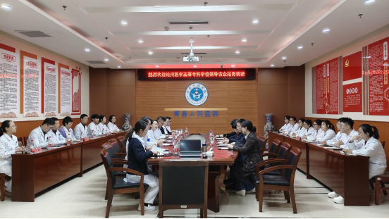 我校才晓茹书记在交流中重点介绍了学校"全力升本"的战略进程及在市政策支持下的建设成效,强调这是学校对接高质量医学教育需求的重要举措,为校院协同育人工作注入强大的发展动力。结合当前医学教育改革要求,才书记提出了三大合作方向:一是深化"党建联合领航"机制,推动党建工作与临床教学、人才培养深度融合,实现党务与业务互通互促;二是强化校院深度协同,以产教融合为抓手,完善医教协同发展体系,通过联合召开临床教学工作会议、共建教学团队等方式,构建"理论-实践-创新"一体化培养模式;三是聚焦高素质医学人才培养目标,精准对接基层医疗需求,提升人才培养的针对性与实效性。同时,才书记结合行业发展与医院实际,提出了“党建保方向、基础保条件、教学强规范、师资重培养、教育重细节”五点针对性的工作总结思路,为双方后续合作明确了路径。